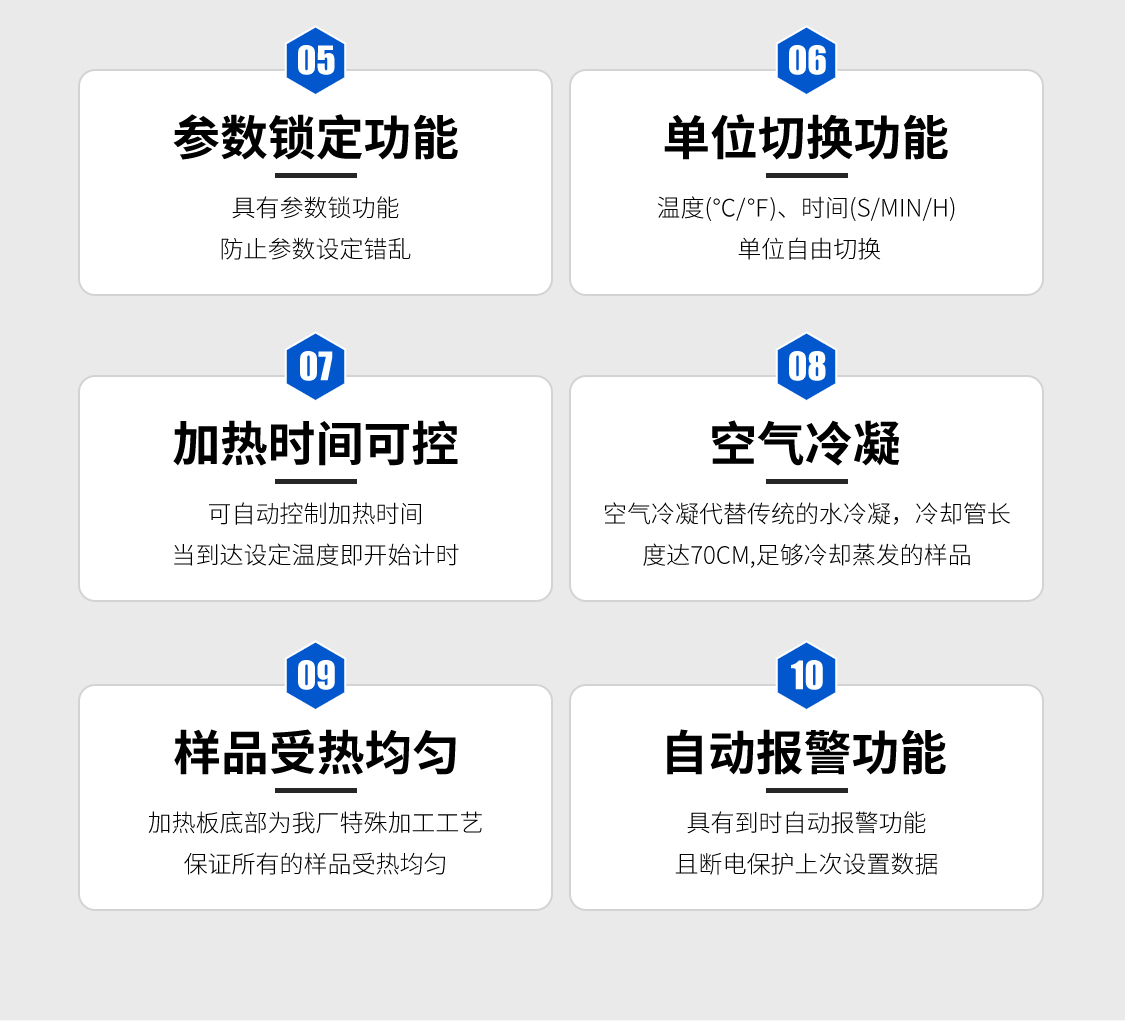 9、加熱板底部為我廠特殊加工工藝,保證所有的樣品受熱均勻。