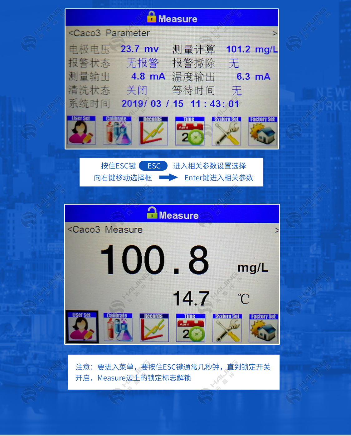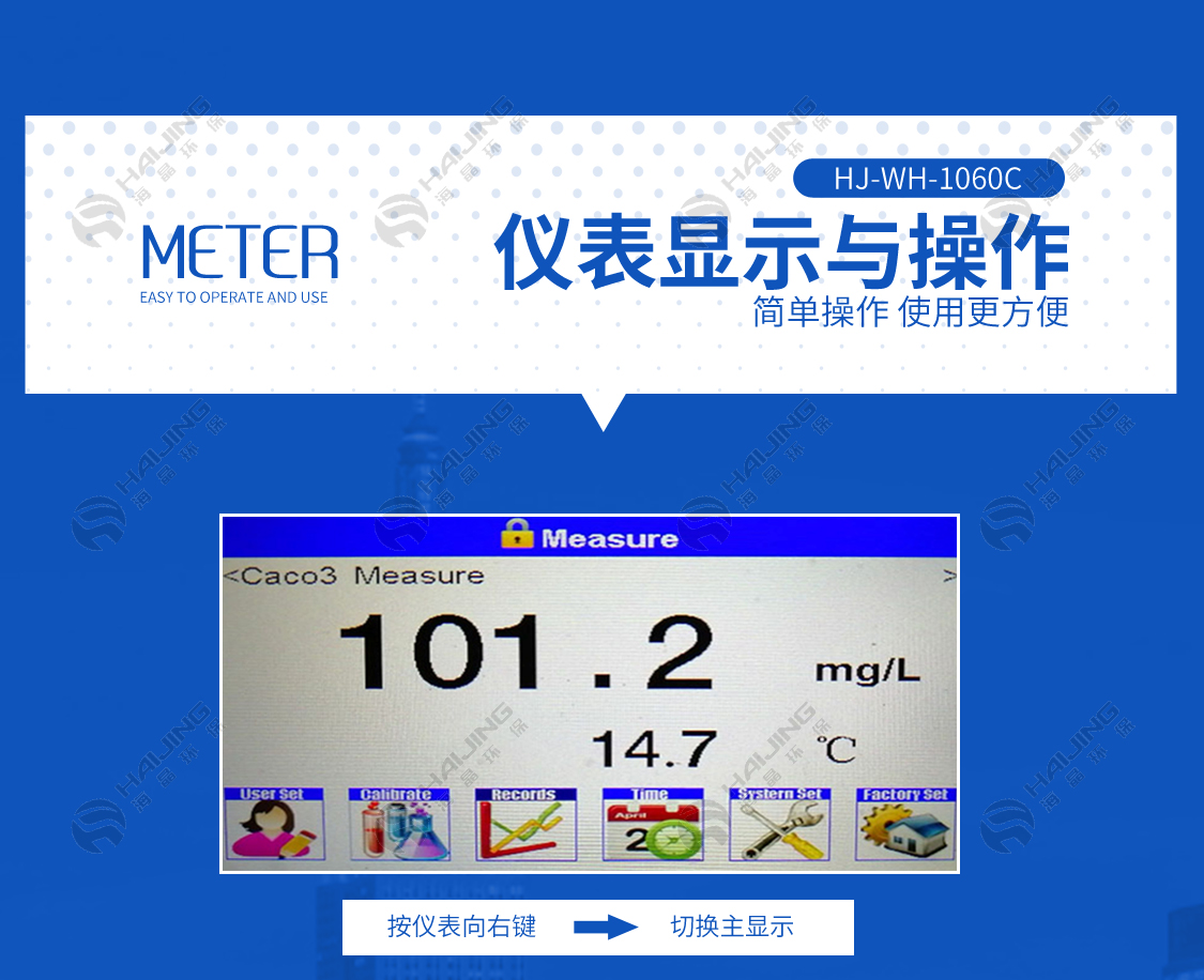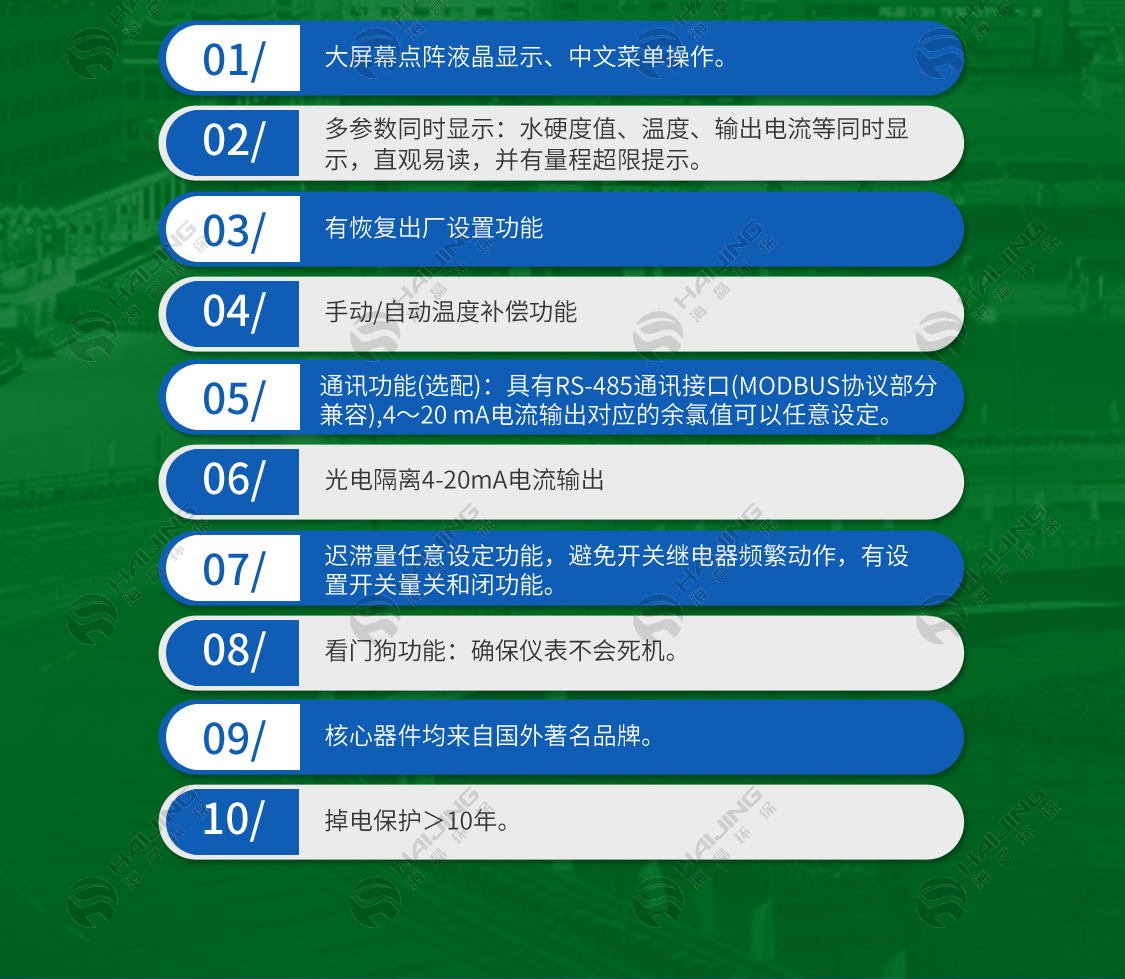2、多參數同時顯示:水硬度值、溫度、輸出電流等同時顯示,直觀易讀,并有量程超限提示。