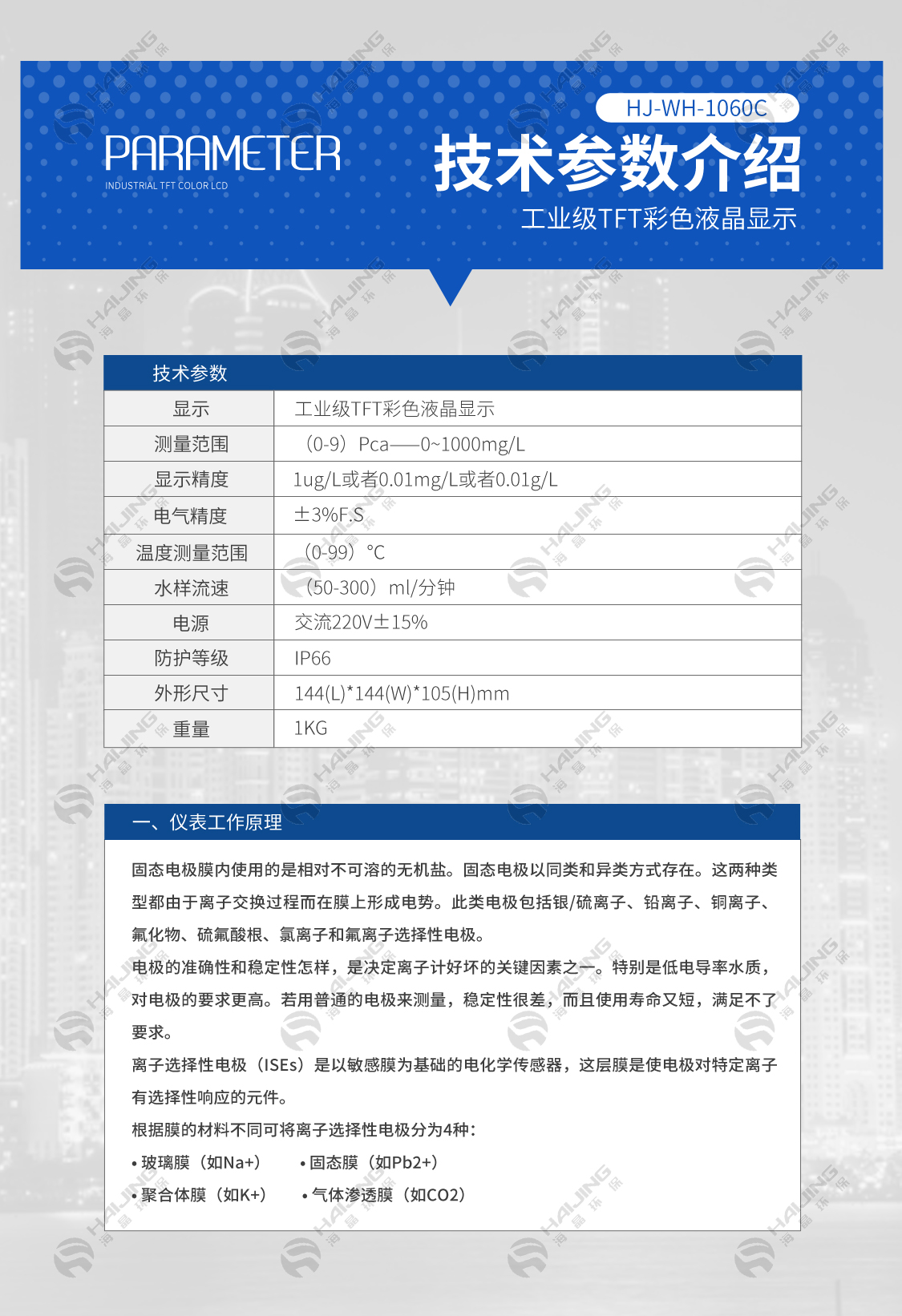 HJ-WH-1060C水硬度在線分析儀采用美國進口先進的水硬度選擇電極法(ISE法),靈敏度高,信號響應迅速,測量準確、性能穩定、維護簡單。該分析儀具有使用方便、準確度高、經濟的特點,確保儀器長期工作的穩定可靠性和準確性。具有中文菜單式操作、485通訊等功能。