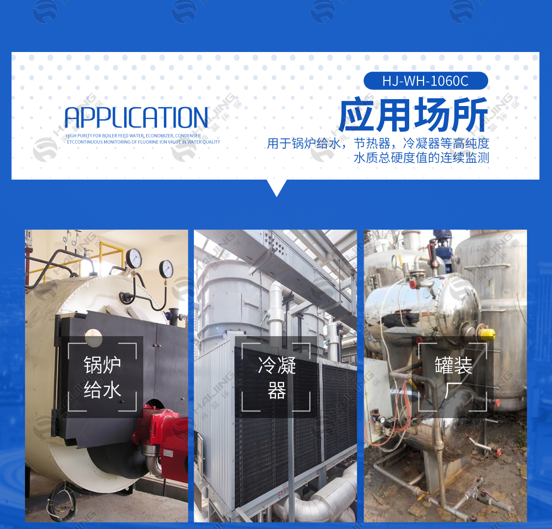 廣泛用于飲用水處理廠、罐裝廠、飲用水分布網、游泳池、冷卻循環水、水質處理工程等對水溶液中的水硬度含量進行連續監測和控制。
