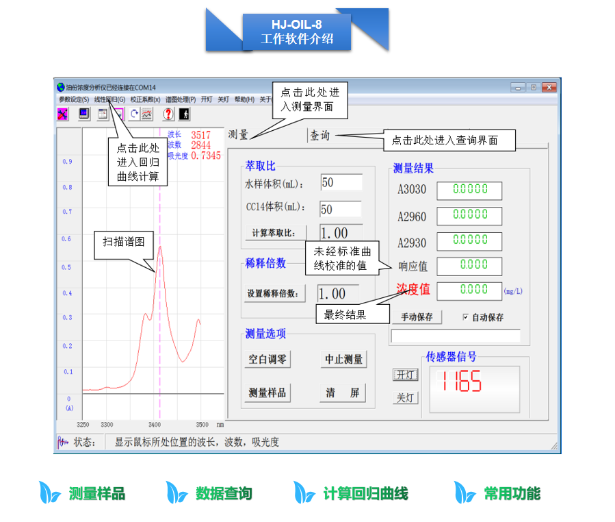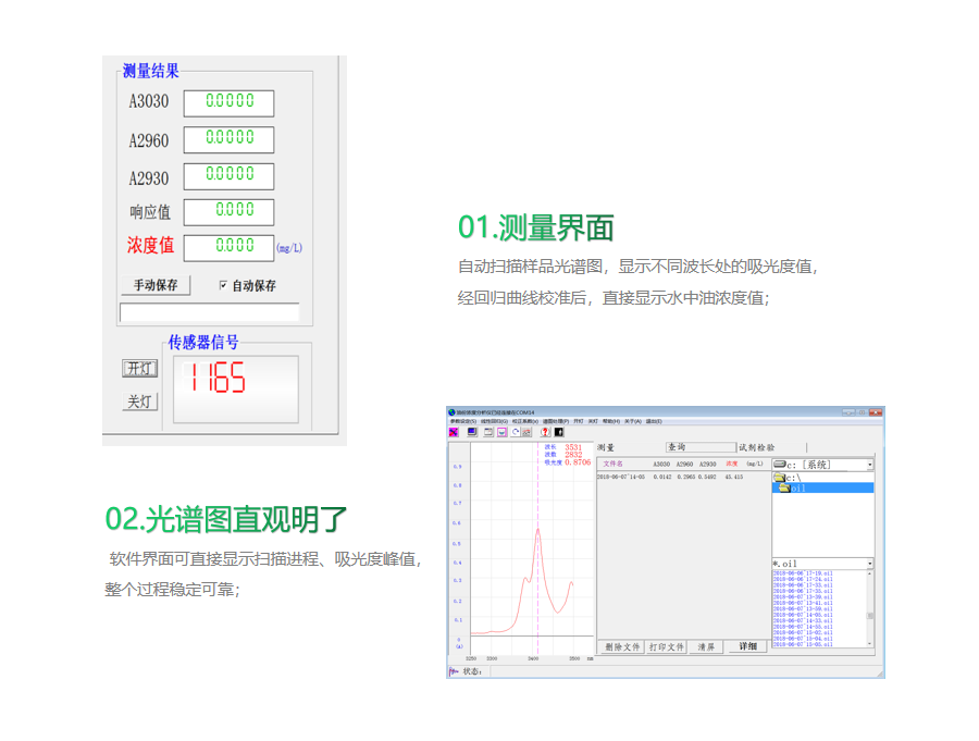 傳統的成分分析先取樣再以定性方式量測,時間長且無法及時得到測量數據。而大多數物質的分子官能基能吸收紅外光,利用光譜能量的吸收與轉換很容易進行內部成分的定性分析和定量計算。紅外測油儀正是以此為基本原理,采用紅外分光光度測量,經對樣品進行光譜掃描,可顯示并打印樣品光譜及吸收峰的波數位置,能迅速、準確地測出水體中油份濃度的全部含量。測定程序符合““HJ637-2018水質石油類和動植物油的測定紅外光度法”國家標準。